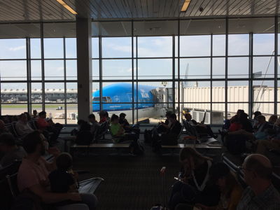Flight back IAD - AMS, Emelie, Diny & Ger, seating 18A, 18B, 18C